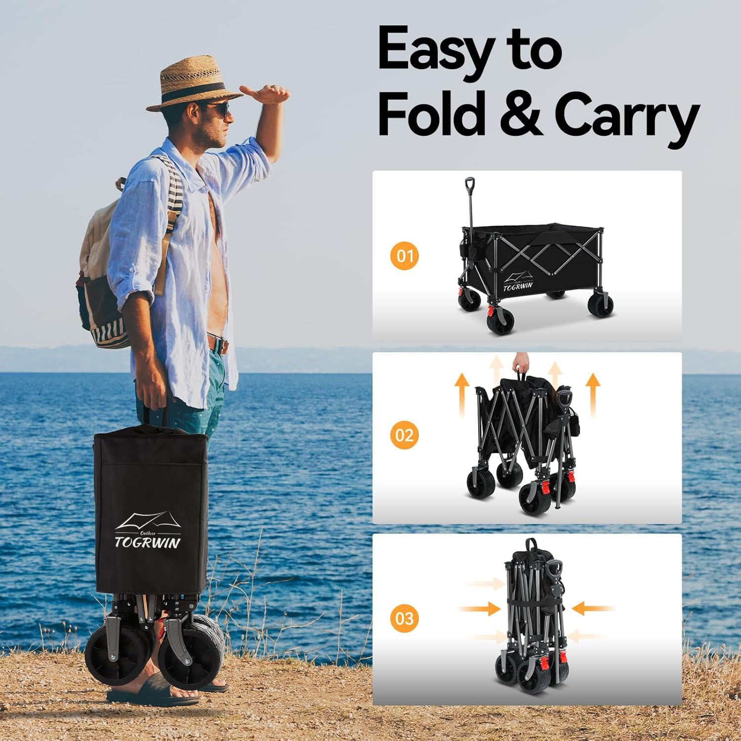 Torgwin Camping Cart Roldable All Terrain Wagon Pliant Beach Wagon