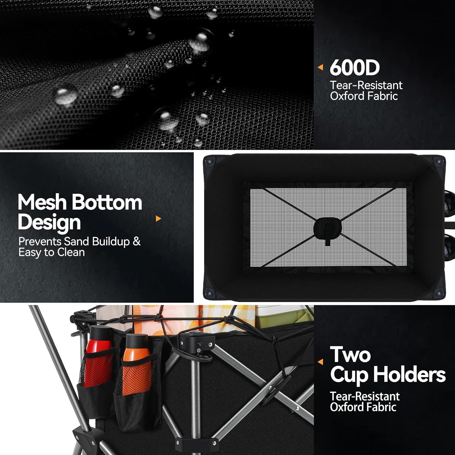 1. Portabilité sans effort:Le chariot de camping facile à plier et à transporter dispose d'un système de pliage intuitif en une étape qui vous permet de l'effondrement en quelques secondes - pas d'outils ou d'étapes compliquées requises. Lorsqu'il est plié, il devient ultra-compact (seulement 5 pouces d'épaisseur), ce qui facilite le stockage dans des espaces restreints comme les troncs de voiture, les VR ou les placards. La poignée de transport intégrée assure un transport confortable, tandis que le cadre léger mais robuste (seulement 18 livres) le rend parfait pour les voyages, le camping ou les courses quotidiennes.